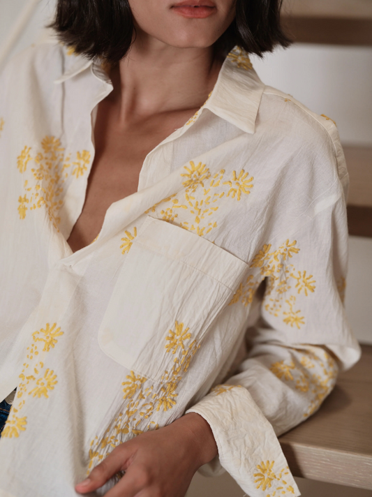 Cissa The Belle Natural Cotton Yellow Handstitch Blouse
