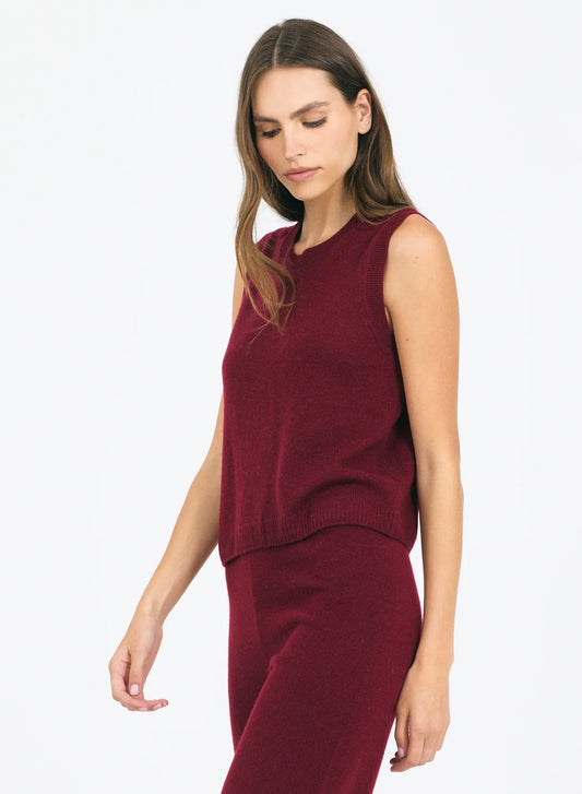 One Grey Day Forbes Cashmere Sleeveless Tee Currant