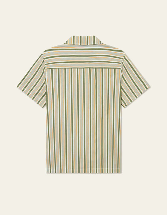 Les Deux Klark Stripe Poplin SS Shirt Chive Green/Thai Curry