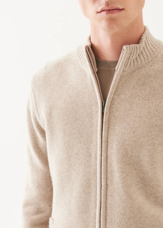 Patrick Assaraf Wool/Cash LS Zip Mock Cashew