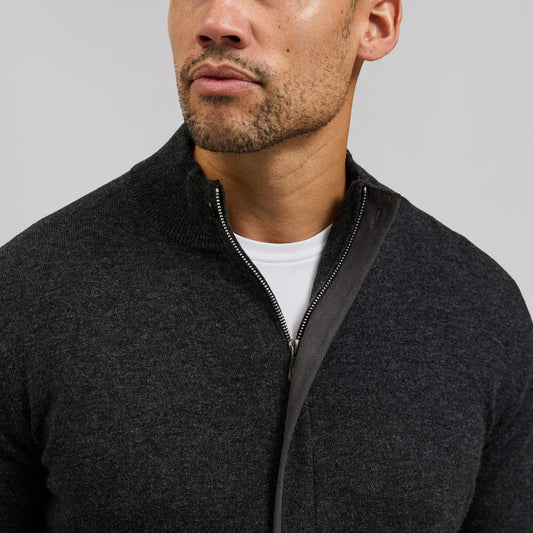 Rye 51 The Rafael Merino Cashmere Full Zip Charcoal