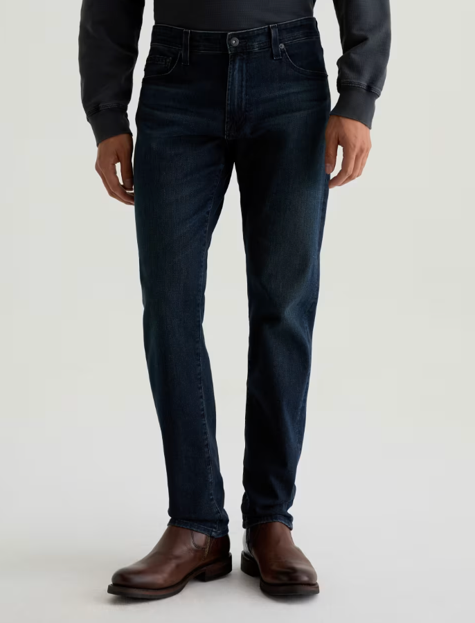 - Details: A nod to the open range, reimagined for today, Tellis is crafted in AG Cloud Soft Denim™, a special left-hand twill construction that gets softer with every wear, AG's modern slim jean with a fitted upper block and tapered leg opening for a roomy fit, designed with whiskering, light fading, and worn-down trim in AG's dark indigo wash, Bishop