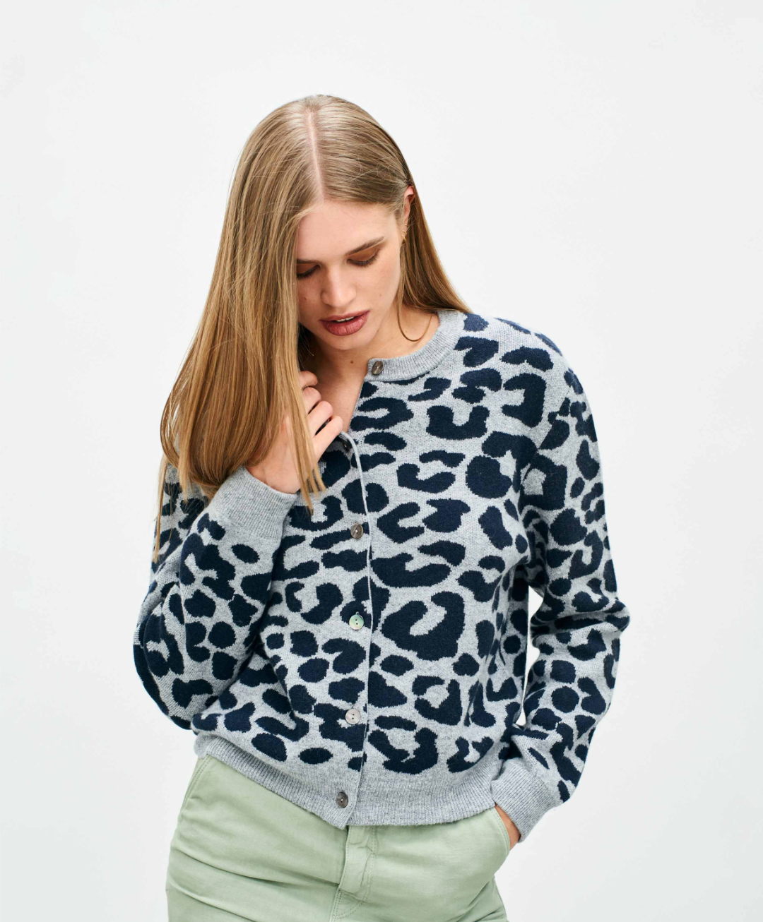 Jumper Leopard Crew Merino Cardigan Smoke/Dark Ink