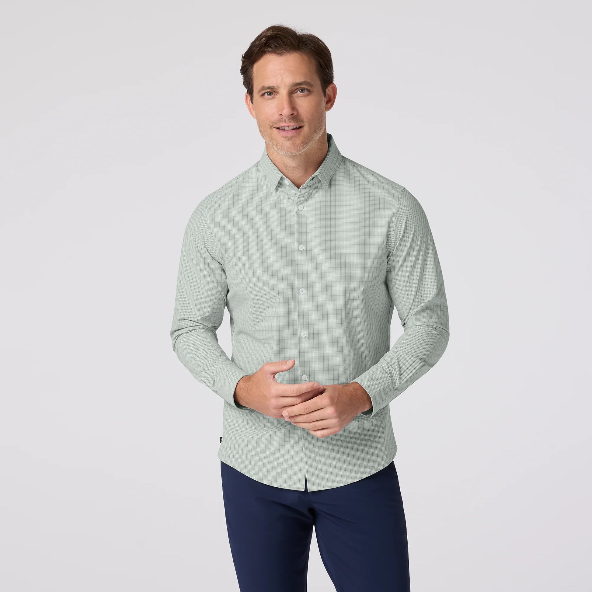 Mizzen + Main Leeward No Tuck LS Shirt Eucalyptus Mini Plaid