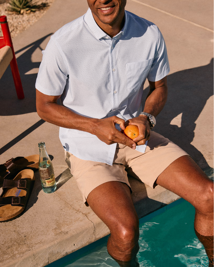 - Details: The Leeward Short Sleeve is a lightweight, wrinkle-resistant short sleeve version of the Leeward Dress Shirt, made from the same performance fabric with a hidden button-down collar for casual or warm-weather wear