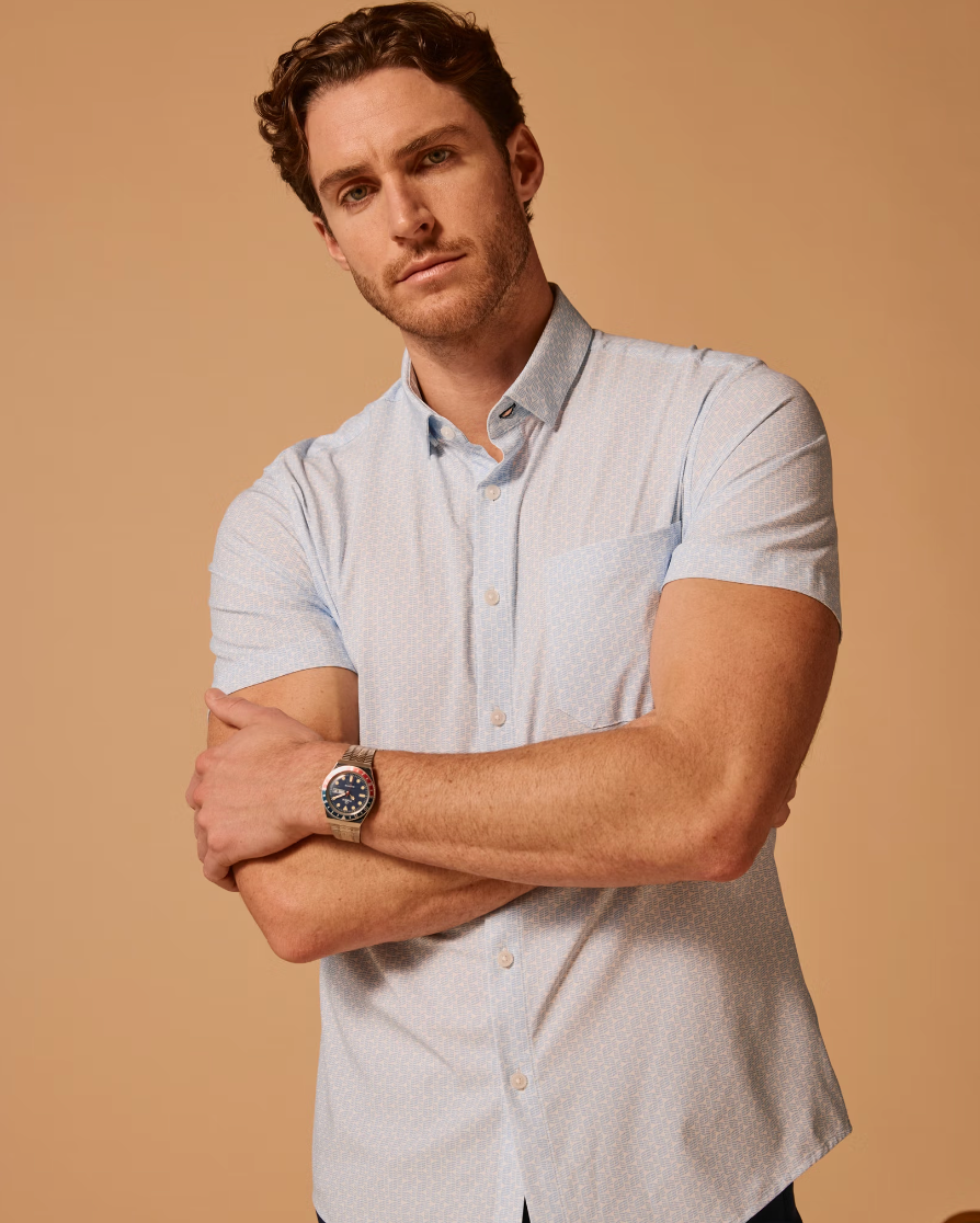 Mizzen + main Leeward SS Dress Shirt White Triangle Dash