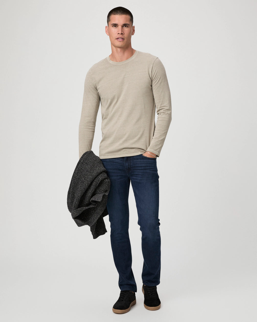 - Details: Federal is Paige's modern slim straight fit, with slight ease at the hip, loosely fitted through the thigh and straight from the knee down, cut from Paige's TRANSCEND VINTAGE denim in a dark wash with subtle fading and whiskering, this style has the look of authentic vintage denim but is incredibly comfortable with plenty of stretch and recovery