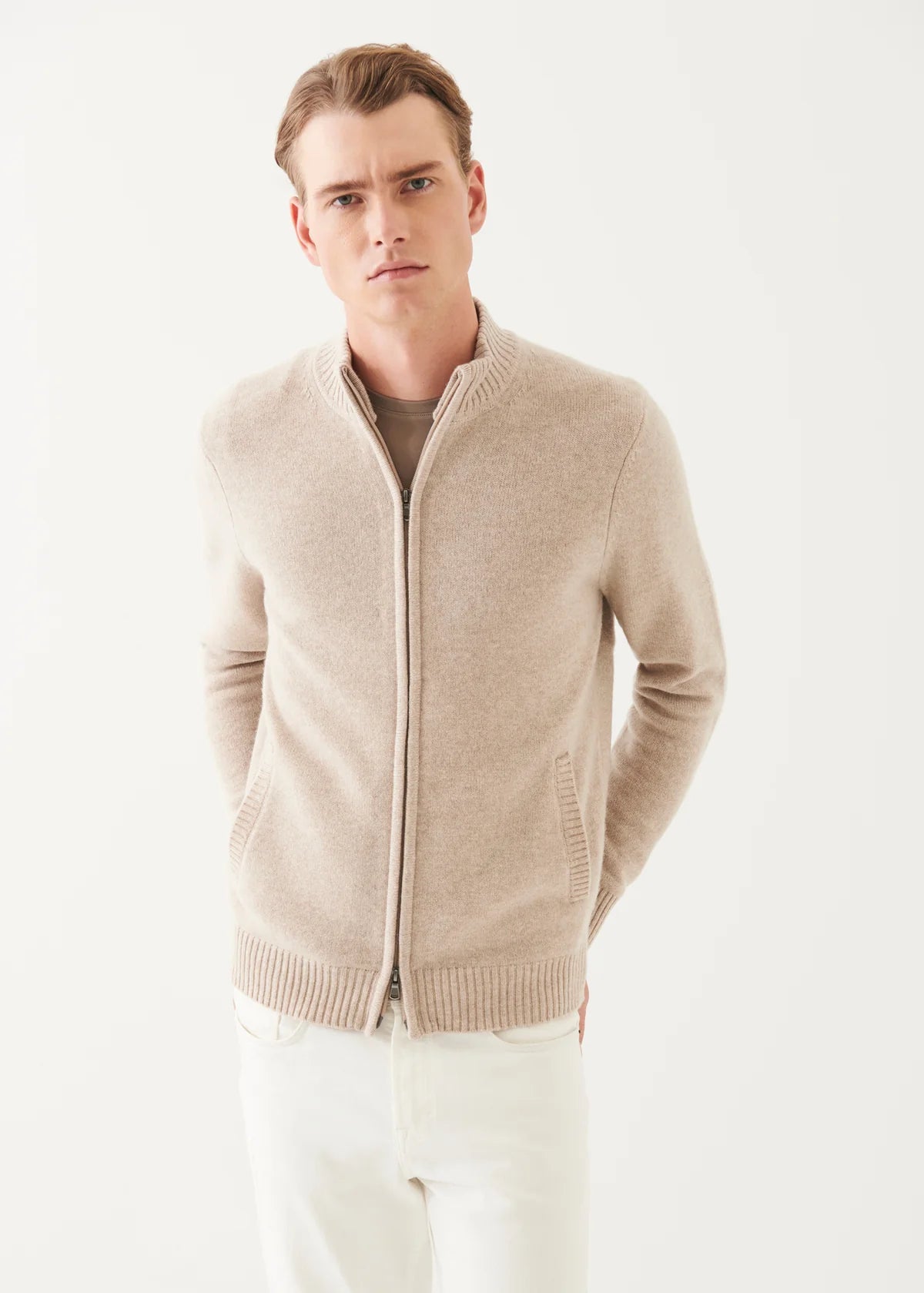 Patrick Assaraf Wool/Cash LS Zip Mock Cashew