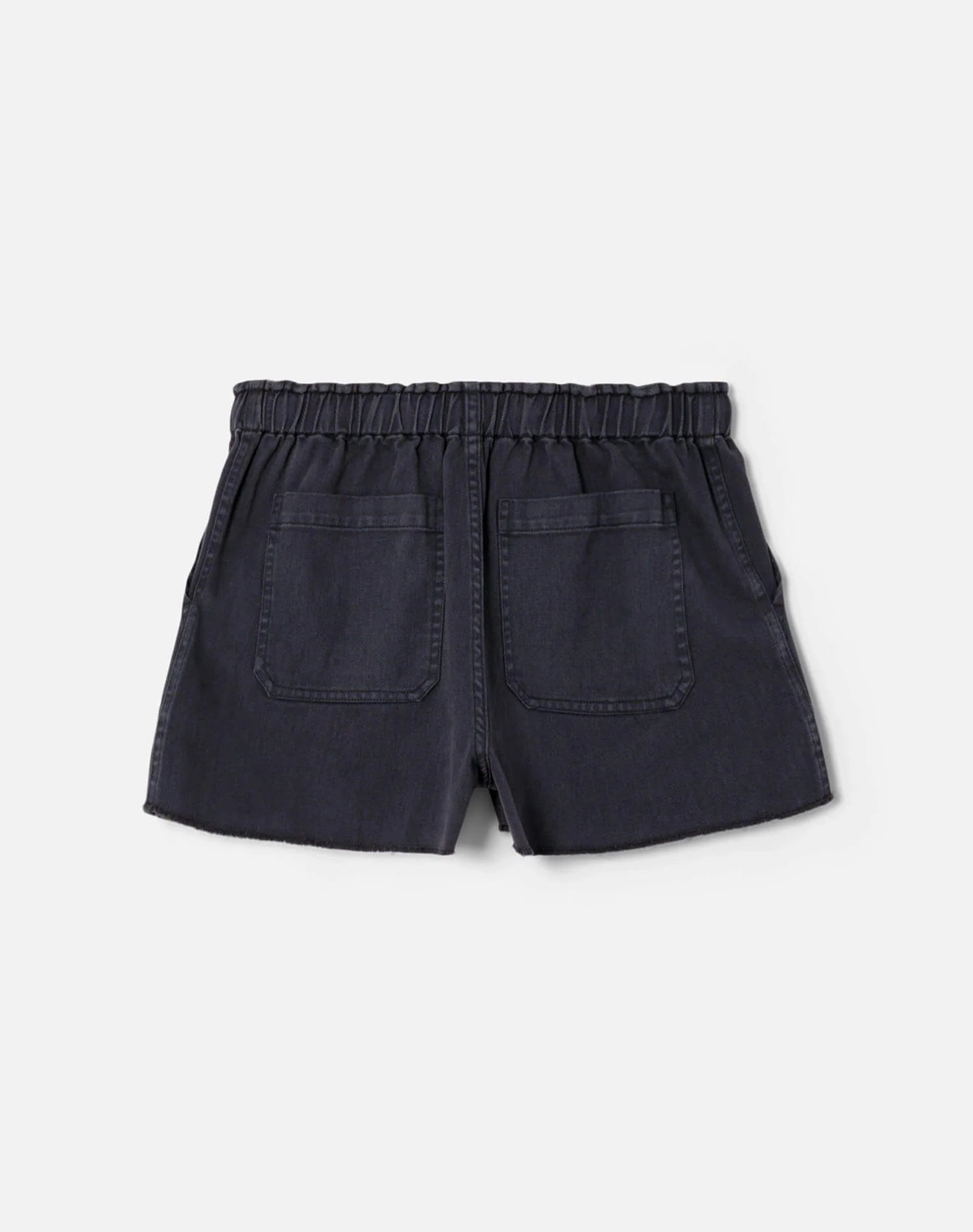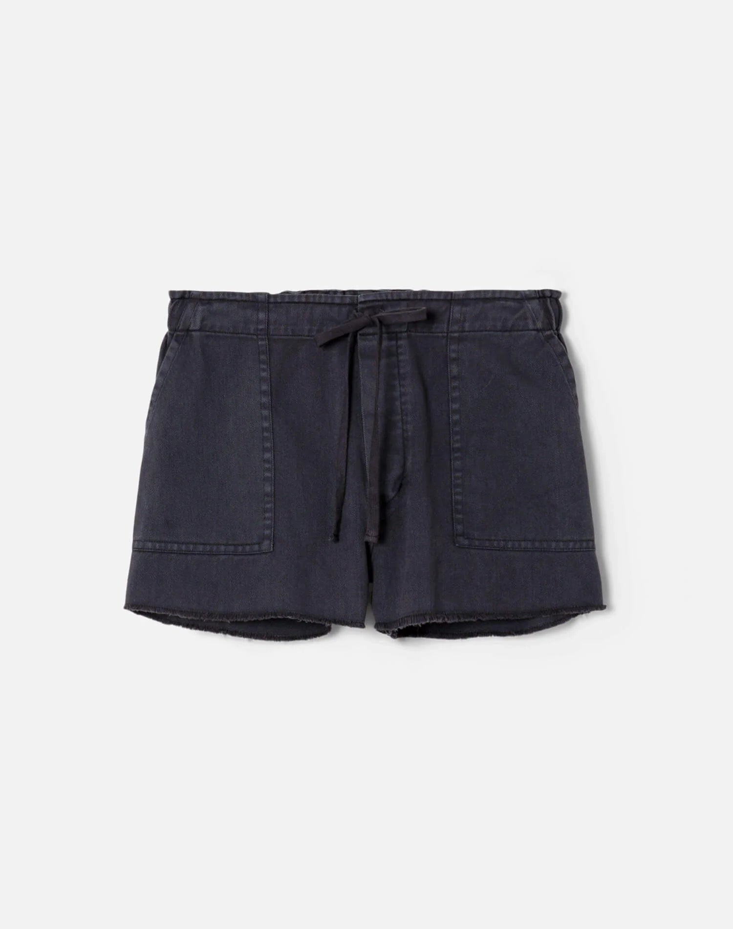 - Details: An update to Re/Done's favorite beach pant as a mini short version, with all the same classic details including utility inspired pockets, elastic backed waistband, button fly and drawstring closure with a fray hem