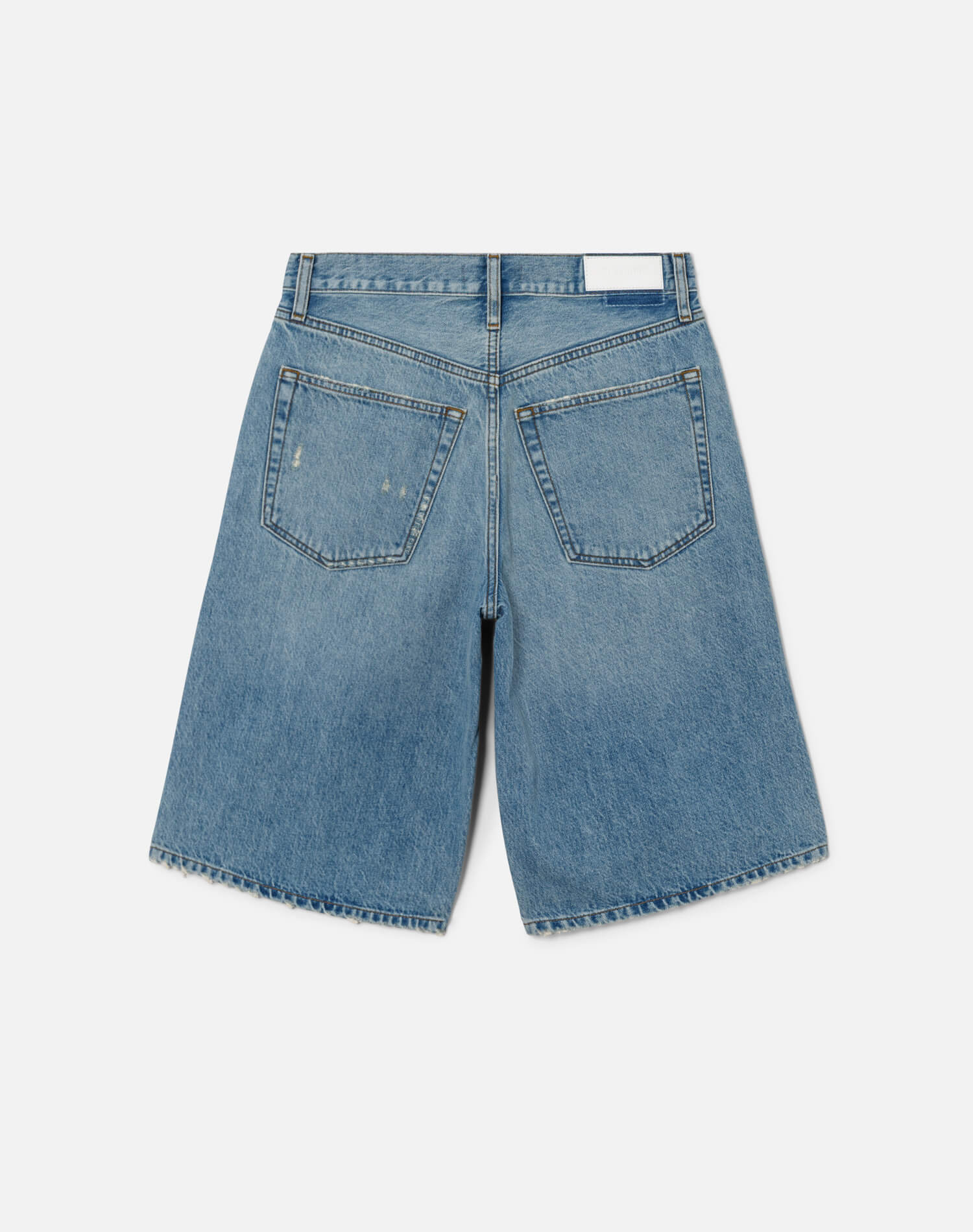 - Details: The Skater Short is Re/Done's takes on an oversized boyfriend short, finished in Italian rigid denim with a mid-rise waist, a wide leg, and an over-the-knee inseam