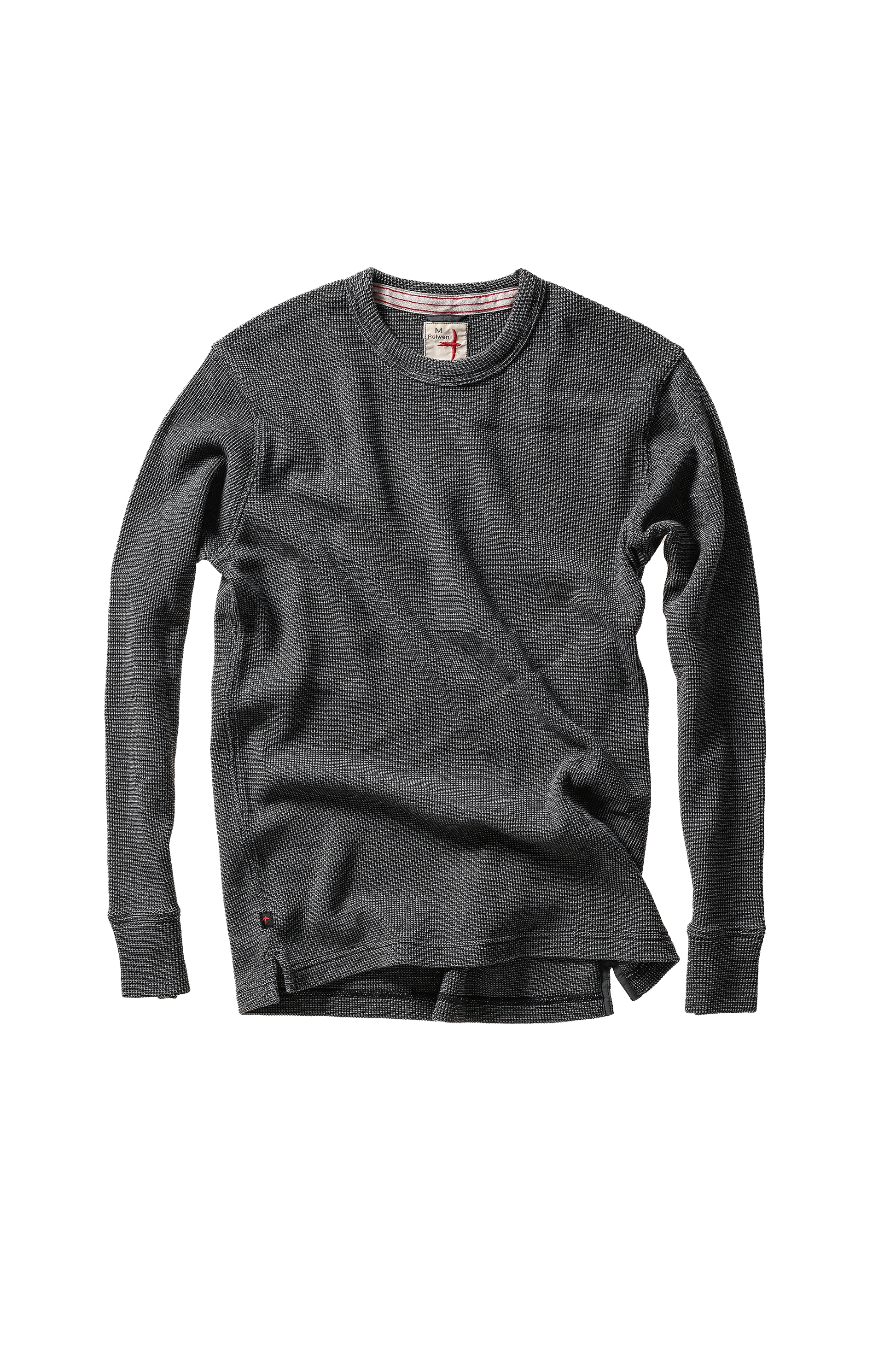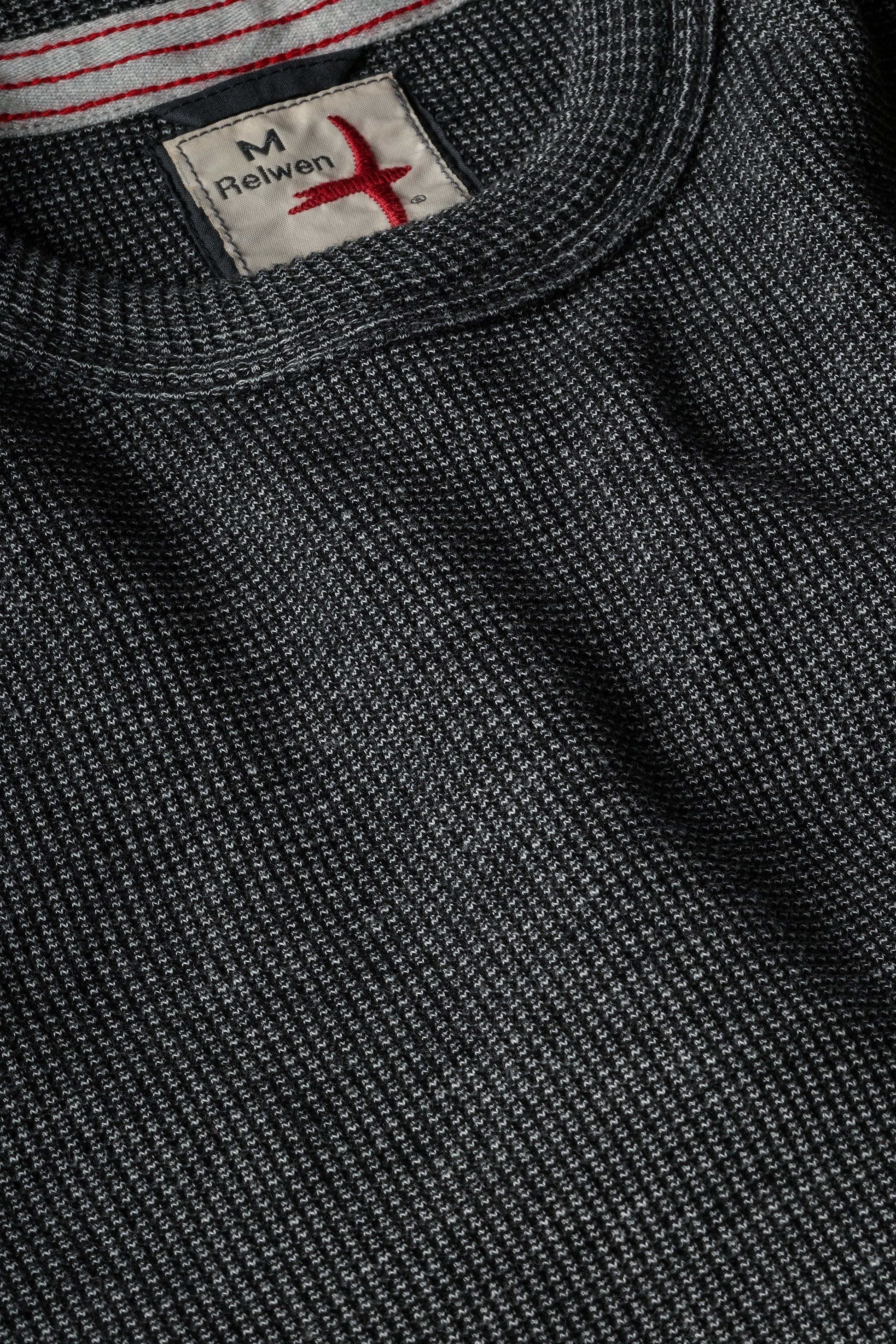 - Details: A staple of outdoor heritage turned fashion in Relwen's yarn-dyed 2-color waffle knit, to wear in its vintage form as a thermal under-garment, or as fitted crew with t-shirt or woven shirt at night, never are layers like this not of necessity to the modern wardrobe
