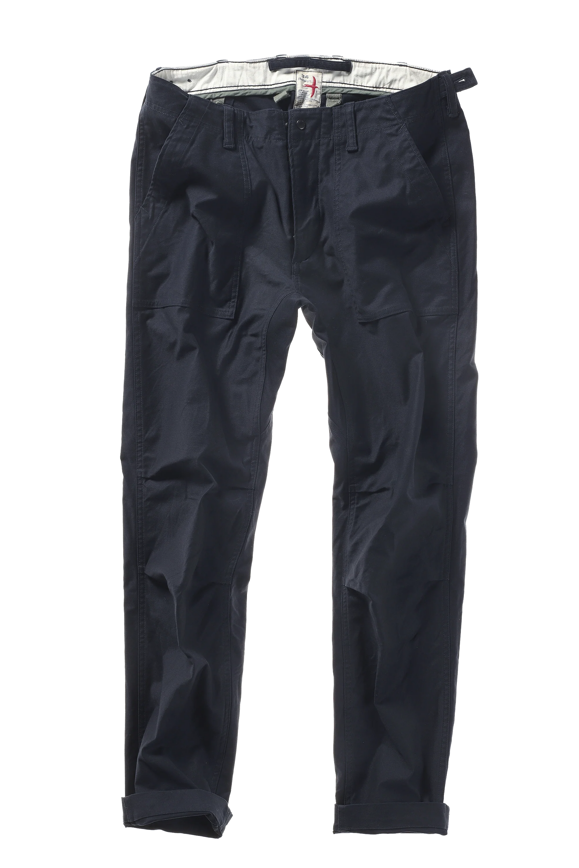 - Details: Relwen's Supply Pant based upon the classic Utility Pant of the U.S. military from the 50’s and 60’s and then slim it a bit with a semi-tapered leg for a more modern aesthetic, Relwen's fall variant features a mid-weight broken twill with 3% stretch, resulting in a rugged yet flexible garment, the front and back pockets are faithfully stitched and shaped with fullness to replicate the original military issue, you will not find a more thoroughly considered and constructed pant anywhere, this is the Relwen jean