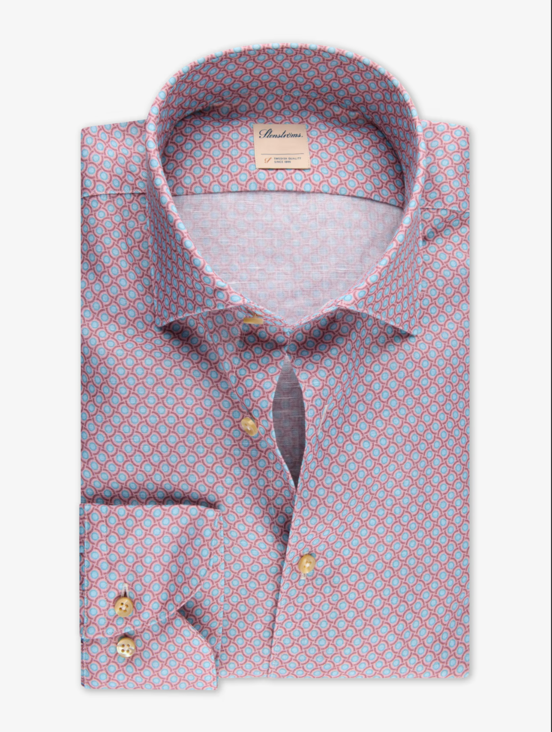 Stenstroms Fitted LS Shirt Lt Pink Pattern