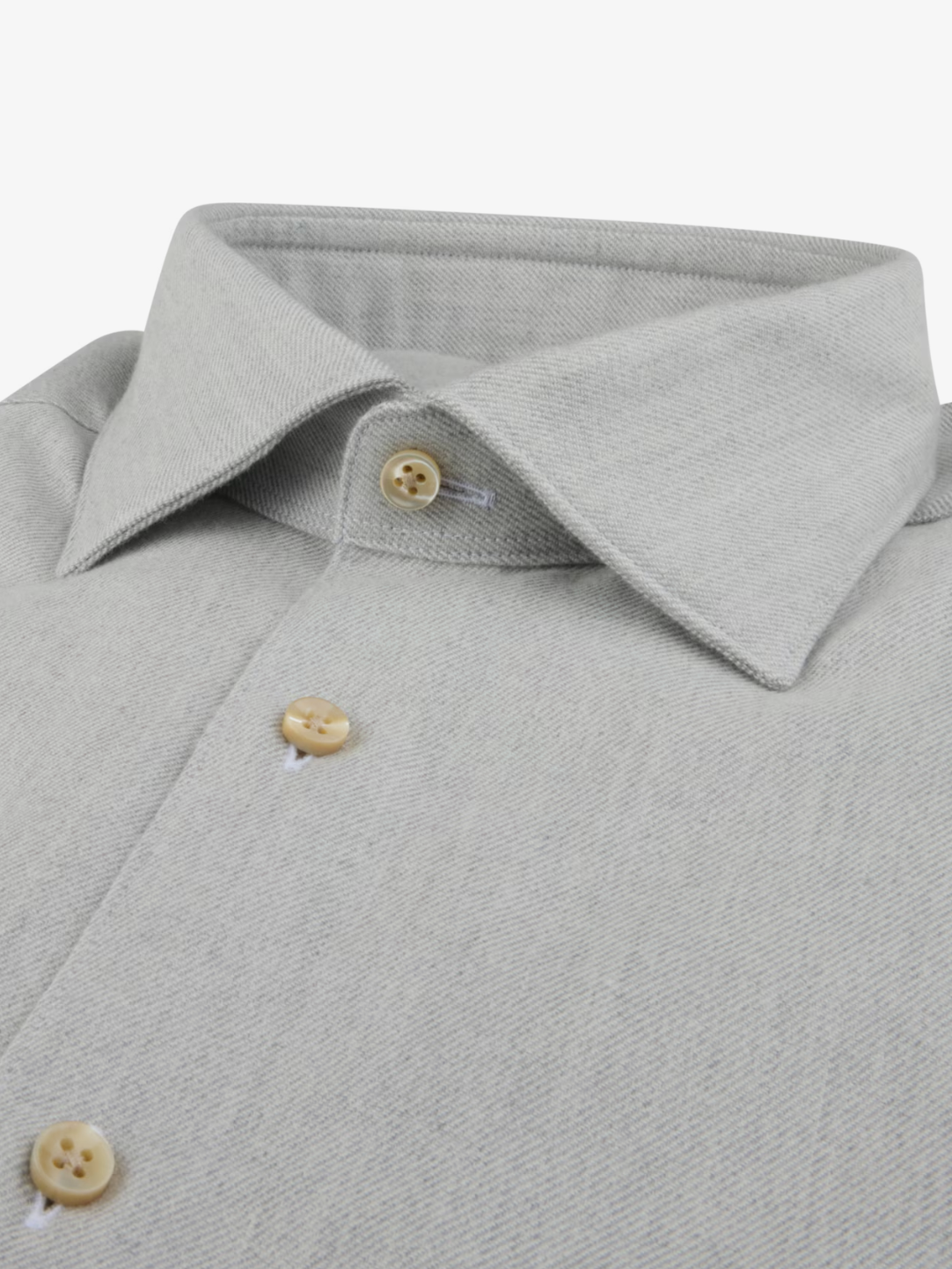 - Details: This flannel shirt is made of twofold cotton, the shirt is detailed with mother of pearl buttons, single cuffs and a cut away collar