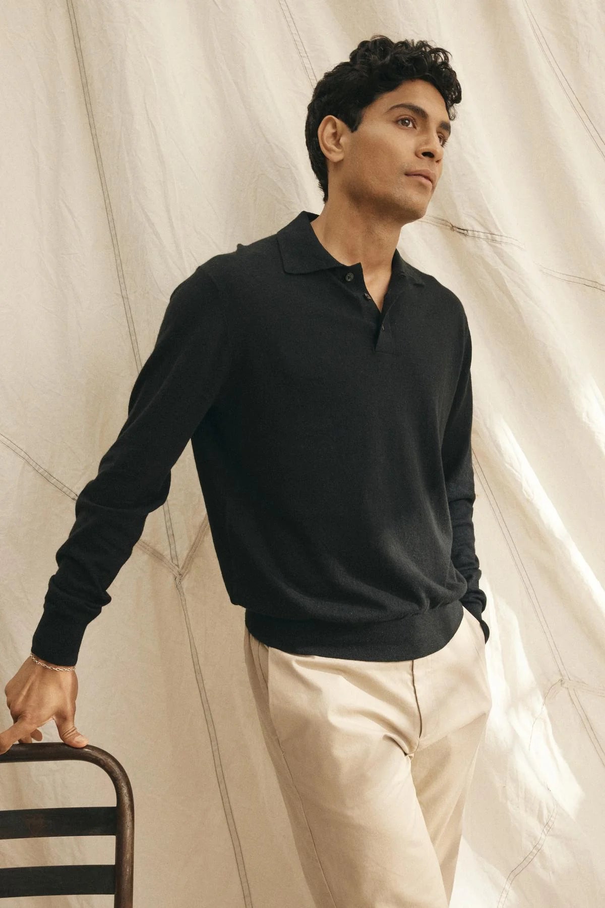 - Details: Made from a breathable cotton-linen blend, this sweater polo features a three-button placket and ribbed collar, cuffs, and hem, its lightweight construction makes it perfect for layering during the transition between seasons